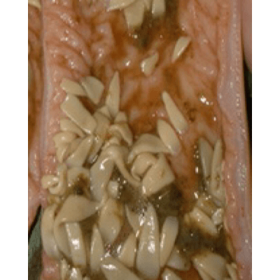 Symptome: Abmagerung, Haarausfall, Darmentzündung, Ursache für Kolik – krampfartige Kolik, Ileocaecal Kolik und Invagination.